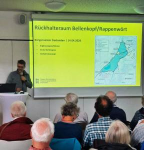 Im Rahmen der außerordentlichen Mitgliederversammlung des Bürgervereins Daxlanden berichtete Herr Daum, der Projektleiter für den Polder Bellenkopf/Rappenwört beim Regierungspräsidium, ausführlich über den aktuellen Stand der Planungen und nächste Baumaßnahmen, jeweils mit Fokus auf Daxlanden. Die dabei gezeigten Folien und eine Vielzahl anderer Informationen zum Projekt finden sich hier: https://rp.baden-wuerttemberg.de/themen/wasser/irp/rueckhalteraeume/polder-bellenkopf/rappenwoert/